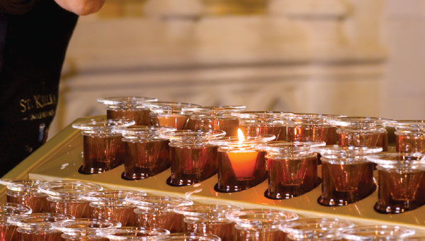 CRVENO = stakla su prljava i treba ih zamijeniti. St. Killians svakoj crkvi nudi besplatnu uslugu čišćenja stakala. Stakla možete čistiti u vlastitom aranžmanu na način da uklonite sav vosak, operete i osušite staklo te ga vratite na svijećnjak.
