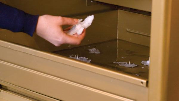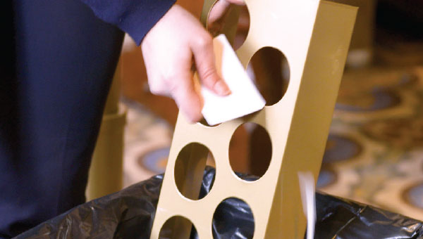 6. Koristeći plastičnu karticu, uklonite ostatke parafina s metalnih pregrada i ostalih dijelova svijećnjaka.