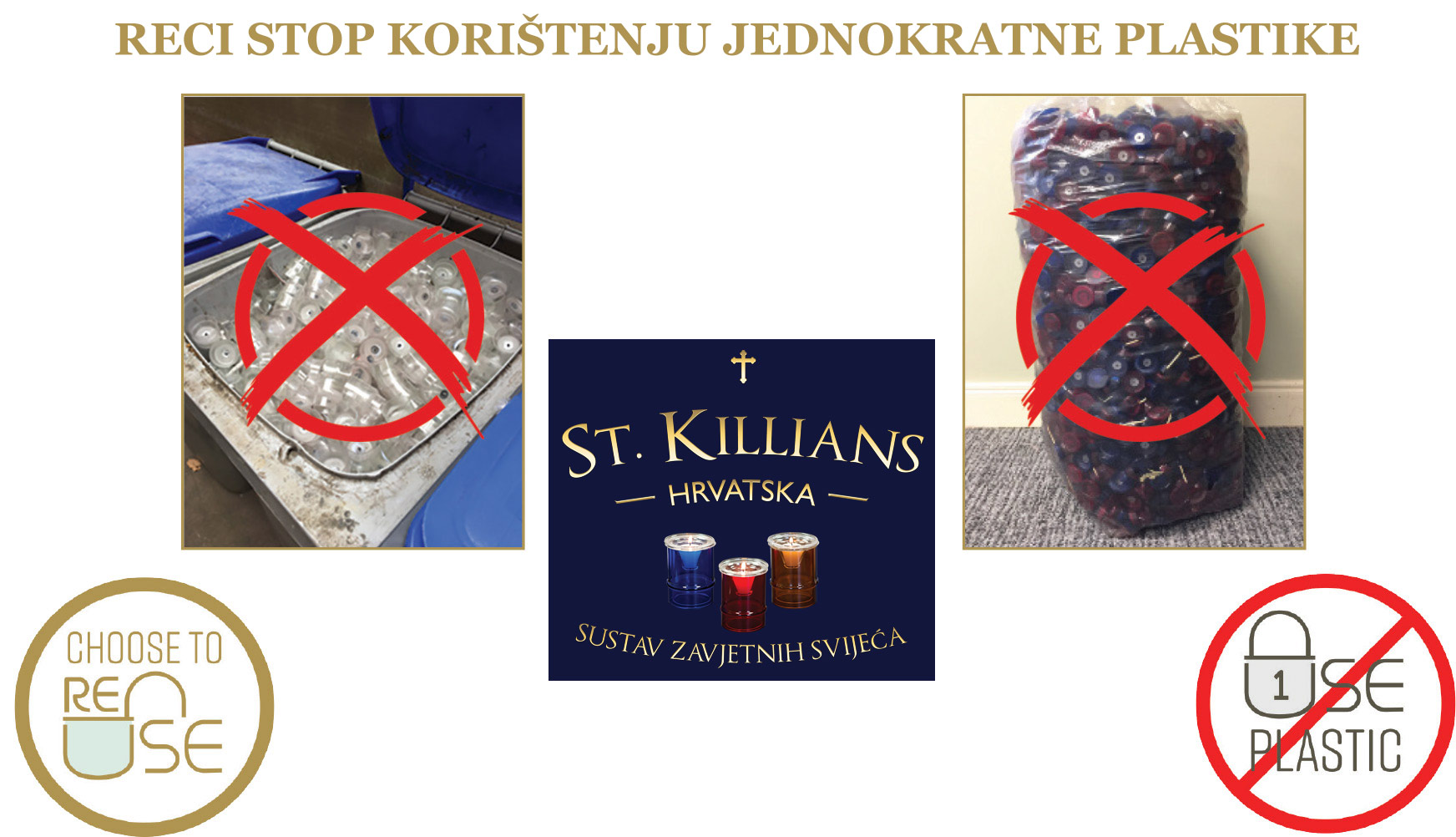 Plastika od ovih svijeća ne može se reciklirati i tisuće tona takve plastike na kraju završava na odlagalištima. St. Killians – rješenje za onečišćenje plastikom. Neka i vaša crkva bude dio rješenja.